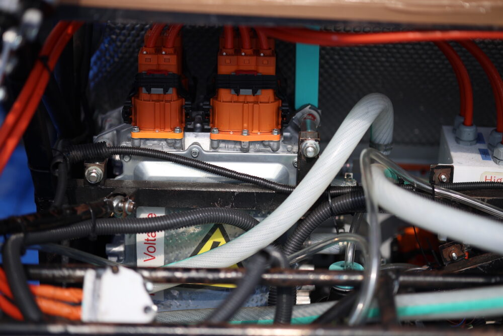 実際に走るクルマを作るにあたって、最優先されるのは安全性だ。車両を走らせるほどの高電圧が漏電すれば命にかかわる。バッテリーが破裂炎上するようなことがあっては絶対にならない。そして、ドライバーが乗って走るのだから、万が一にも制御不能になって暴走するようなことがあってはならない。ブレーキも確実に動作しなければならない。