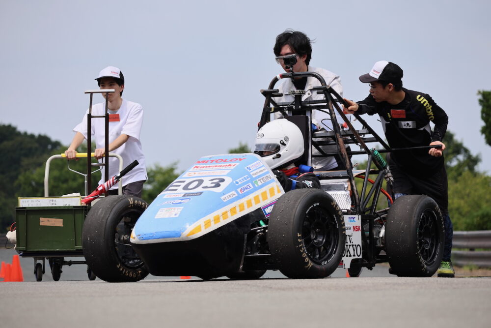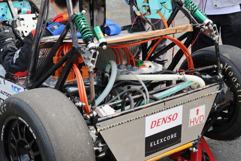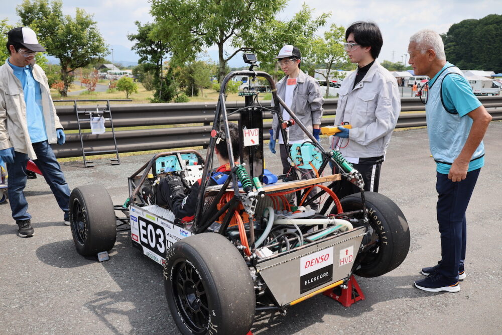 鋼管フレームを作り、サスペンションを作り、パワーユニット(エンジンクラスとEVクラスがある)を搭載し、ブレーキを作り、操縦装置を作り、キチンと走らせる。手弁当で参加する学生たちにとっては、それだけでも大変なことだ。