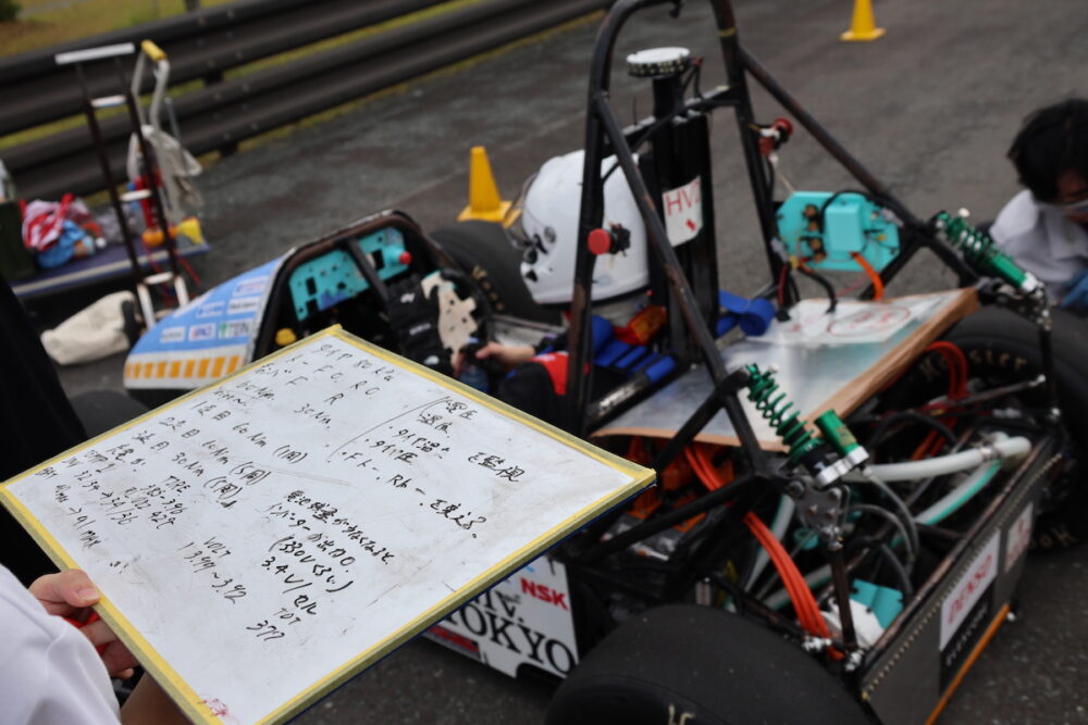 他のチームの車検を見ていたが、ブレーキを踏んだ時に、ちゃんとまっすぐ制動できて止まるというのも簡単なことではないのだと思った。どちらかの車輪の制動力が強く、制動時に曲がってしまう車両がけっこうあった。
