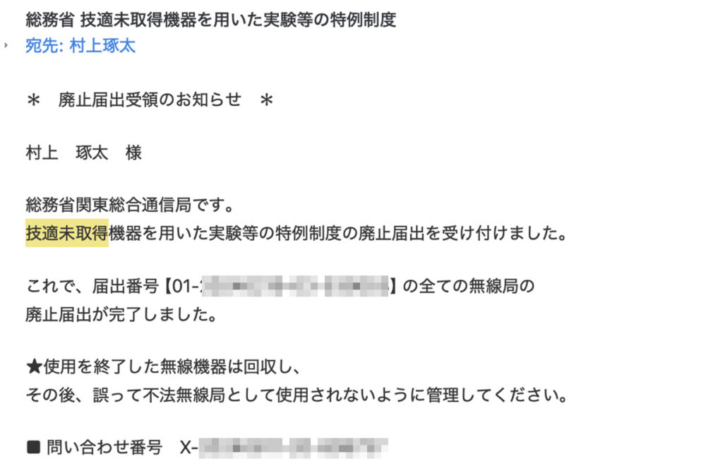 『技適未取得機器を用いた実験等の特例制度』の届け出を廃止