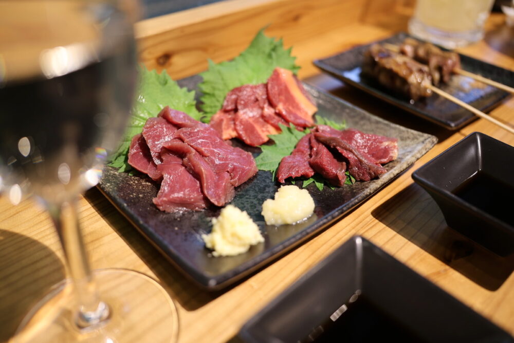 散歩してから、馬刺と羊肉が食べられるお店で一杯飲んだ。