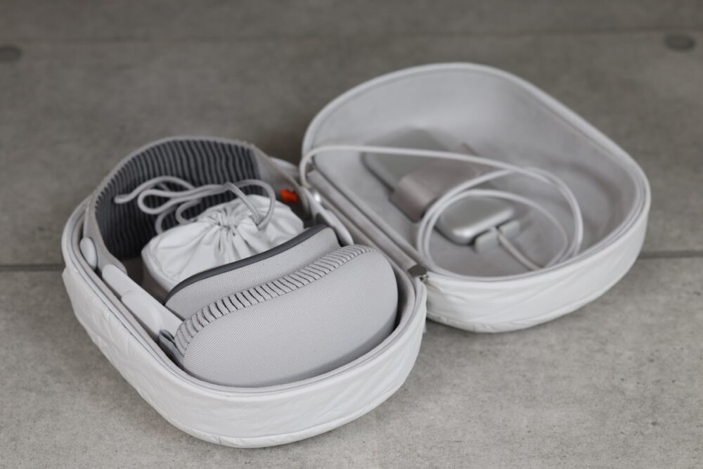 また、Vision Proが「すっぽり収まるように」できているので、このケース自体がデカイ。グリップはあるが、肩掛けのストラップなども付いていないので、このケース自体を持ち歩くのもたやすくない。ちなみに、筆者はこのケースをWWDCなどの時に記念品でもらったトートバッグに入れている。トートバッグにはジャストフィットサイズ。