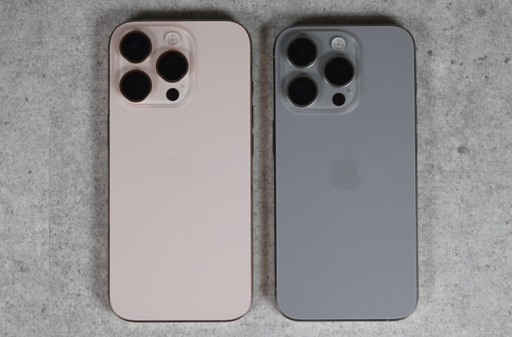 正直、15 Proから16 Proの外観デザインの違いは小さく、ナチュラルチタニウムなど変化の少ない色を選ぶと、どちらがどちらか区別がつかないほどだ。