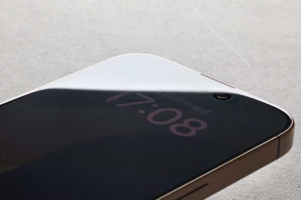 有名ブランドの保護ガラスであれば、iPhone 16 Proシリーズのタッチパネルの端が強いRを描いていることを事前に察知して、上記のような何らかの対策を講じているはずだが、安価な無名ブランドの商品は、そのあたりはいいかげんである可能性が高い。普通に貼ると周囲が浮き上がった状態になる……という可能性は高い。