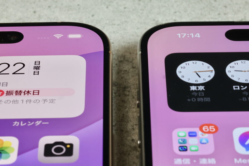 普通に見ていると気付きにくいことだが、今回の16 Proシリーズのガラスは、エッジ部分が非常に緩やかに丸みを帯びている。にもかかわらず、ディスプレイの表示面は従来より一層エッジに向けて広がってるので、角度によってはそのガラスの曲面がディスプレイの見え方に影響することもある。