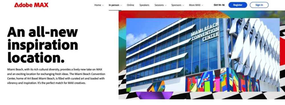 ご存知のように、Adobe MAXは毎年ロサンジェルスで開催されているのですが、今年はマイアミコンベンションセンターでの開催となります。