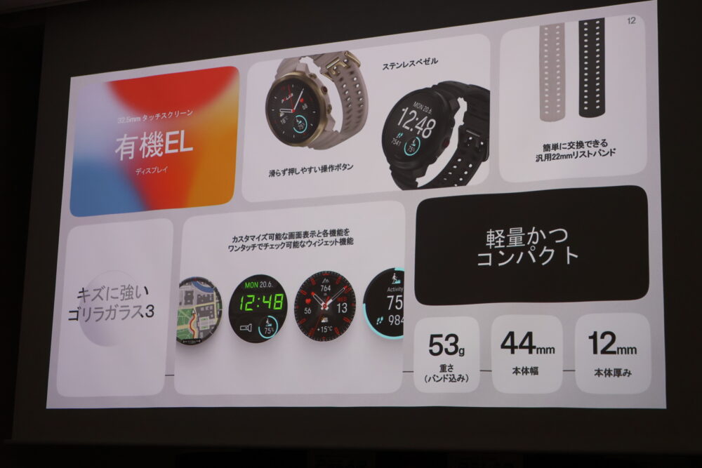 Vantage M3の特筆すべき点は、その軽量さと高機能性にある。53gという軽量なボディに、有機ELディスプレイ、デュアルバンドGPS、心拍センサー、さらには皮膚温や血中酸素レベルの測定機能を搭載している。