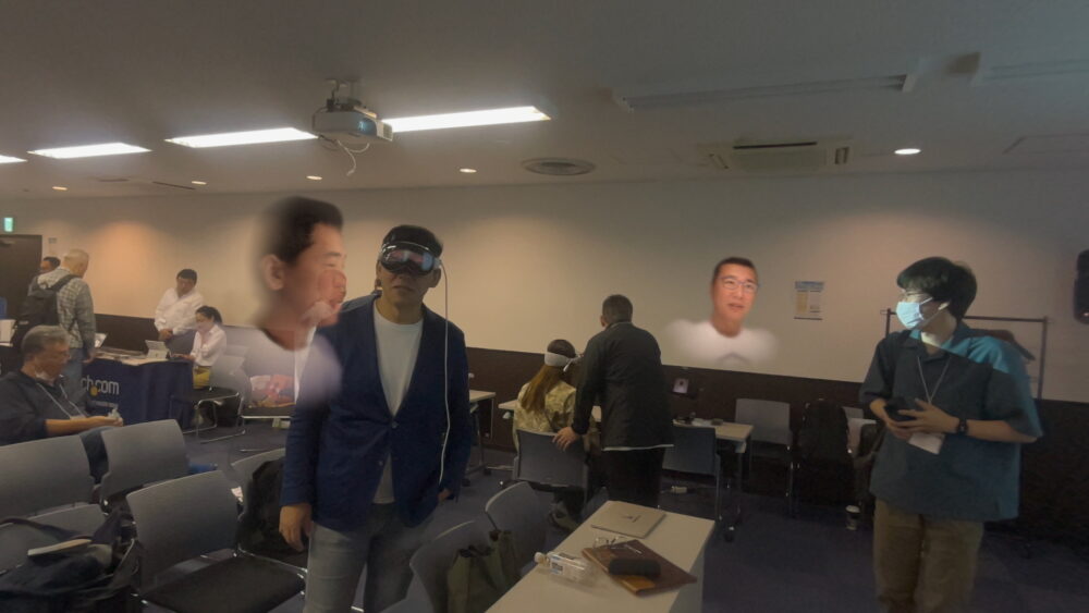 実際、たくさん人のいる会場で、Vision Proユーザー6〜7人がFaceTimeに入ると、リアルとバーチャルが渾然一体となって、面白かった。