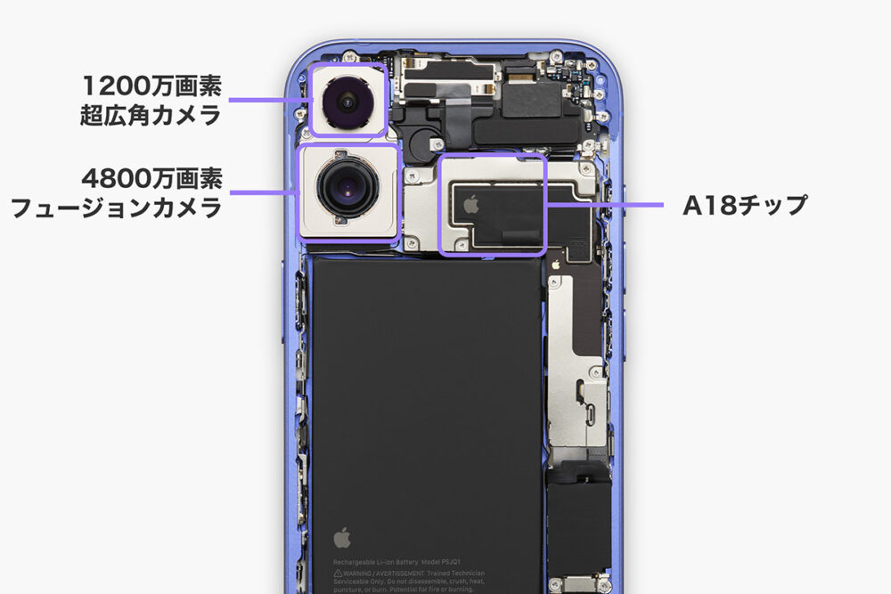 「僕が記憶している限りでは、それは正しいですね」とディンさんは答えてくれた。しかし、今年のiPhone 16では、チップセットをバッテリー上部に移動して(これまではバッテリーの横だった)、バッテリー自体を短くワイドな形状にすることでスペースを作っている。対して、iPhone 16 ProシリーズはやはりL字型バッテリーを使っているが、今年は、金属の筐体に入れて、バッテリーの化学的組成を変更し、よりエネルギー密度を高めているとのことだった。
