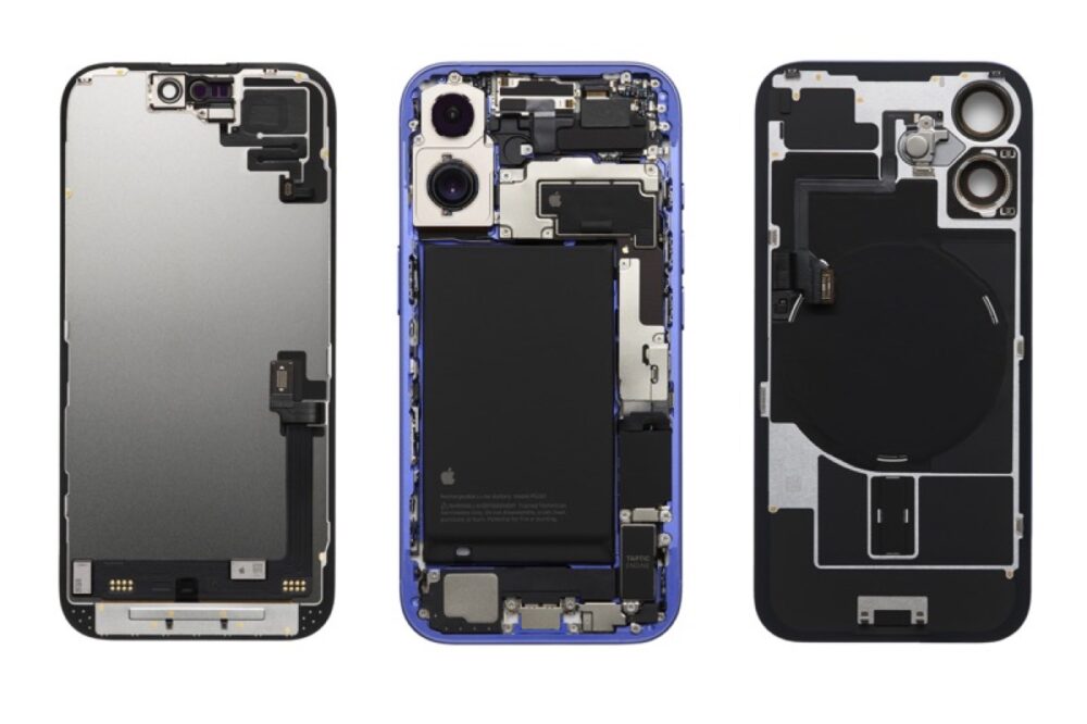 この構造は欧州を中心に問題にされている『Reparability(修理のしやすさ)』に対応するためのもの。ディスプレイ側が開くiPhoneでは、認証に使われるために非常にデリケートな存在であるFace IDを外さねばならず、修理難易度が極めて高い。対して、『Central Structural Frame』では、背面側から多くの部品にアクセスできるために、Face IDを外すなどの難易度の高い作業をしなくても、バッテリー交換などの作業が可能になっている。