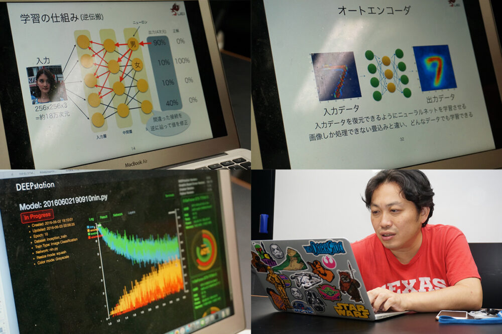 8年前に深層学習について熱く語る清水さん。早い。早すぎて、誰もついてきていなかった。筆者も、当時、現在のAIの基本的な仕組みである深層学習の話を聞いていたおかげで、今AIがブームになって、基礎的な理解がしやすくて感謝している。