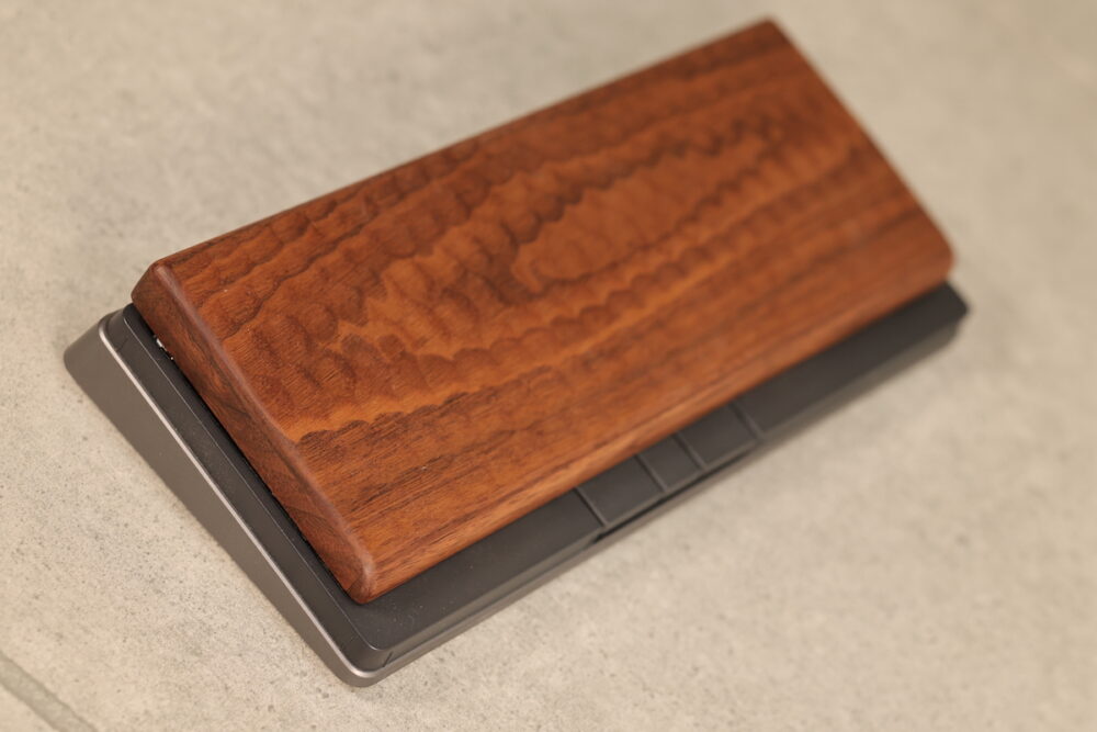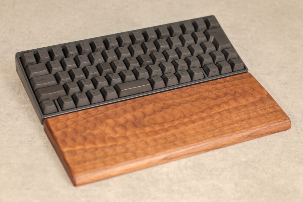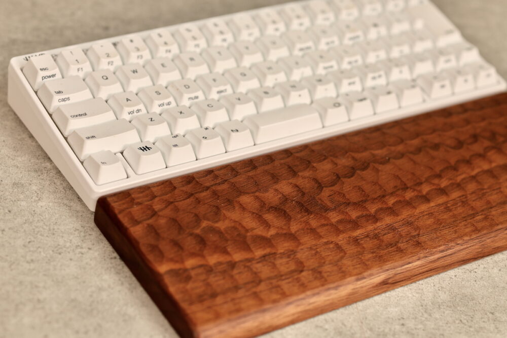 以前のパームレストに続いて、今度は亀甲名栗木製パームレスト&キーボードルーフ (ウォールナット)を試した。