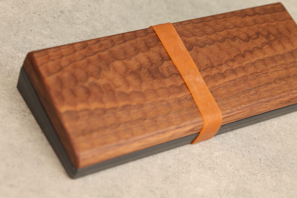 HHKBと一緒に使うことで、持ち運びの時にキートップを守ると同時に、使用時にはパームレストになるという実用性と、モノとしての美しさを兼ね備えた逸品だ。