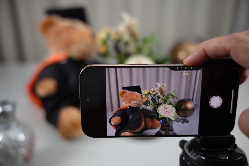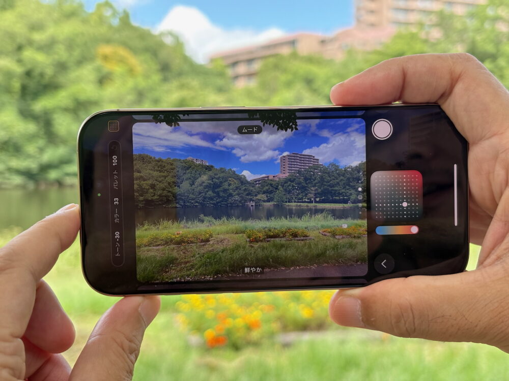 カメラコントロールを活用できるシーンとして考えられるのは、iPhoneを三脚などに固定したシチュエーション。この状況だと、カメラコントロールボタンは非常に操作しやすい。