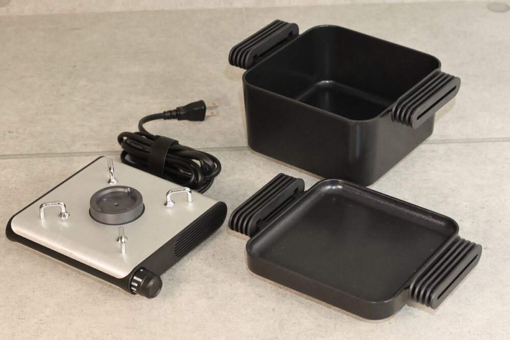 ユニークなのは、コンロなどの熱源があって、フライパンや鍋を温めるのではなく、プレートや鍋部分が直接温まるというところ。その間を熱伝導に頼っているわけではないので、無駄がないように思うし、温度制御が正確。