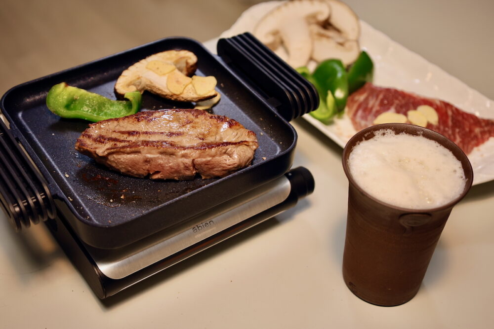 なんというか、これが最高。キッチンで焼いて持ってくるより、自分の好きな焼き加減で焼けて、冷めないしとてもいい。