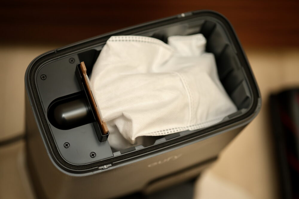 本体からゴミ捨てをしなくても、ステーションの方に吸い上げてくれるし、ステーションの中でもカートリッジ式になっていて、外して捨てるだけ。手間要らず。