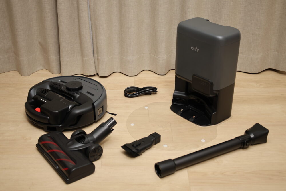 ロボット掃除機と、ハンディ/スティック掃除機用の部品に加えて、自動ゴミ収集ステーションまで付属している。
