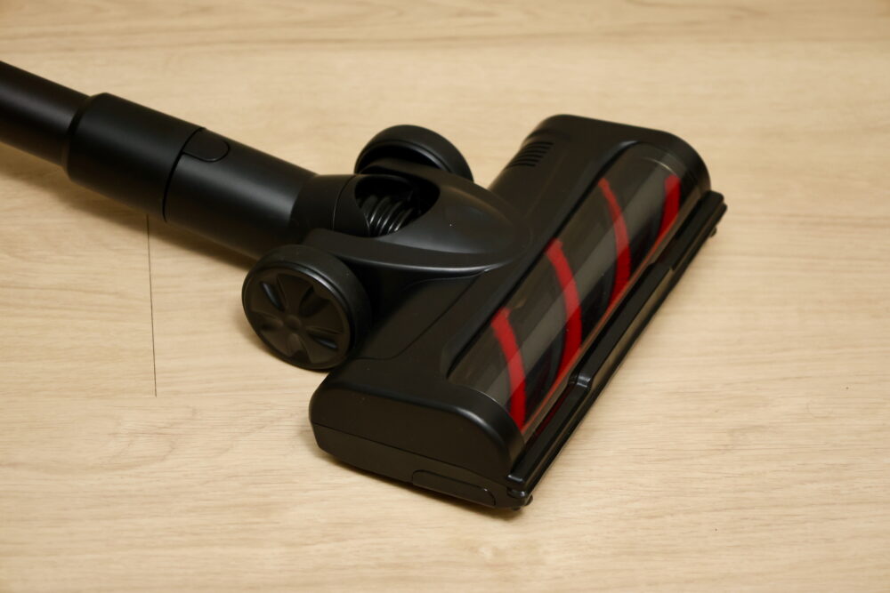 先端には、ちゃんとモーターで回転するローラーが付いていて、カーペットなどからでもゴミを掻き出してくれる。