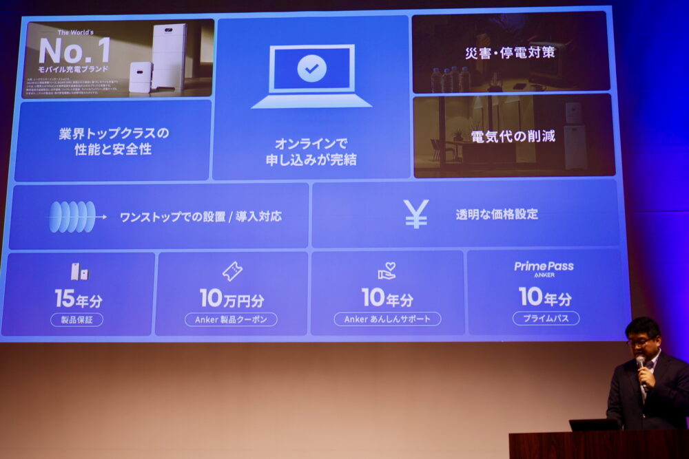 Anker始まって以来の超高額商品ということでさまざまな、新たなチャレンジがが用意される。製品単体を売るというわけではなく、事前の調査、取り付けなど包括的なプランとなっており、最大15年までの分割払いが可能となっている。