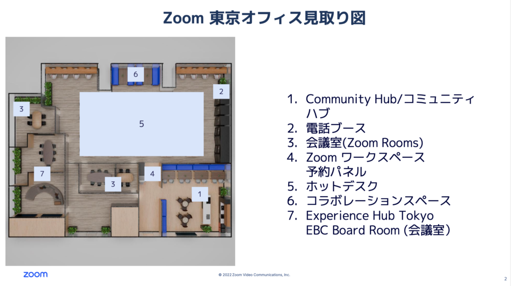 席はオンラインで予約することができて、在席中は誰がどの席に座っているか探してコミュニケーションを取ることができる。電話はもちろんZoom Phoneなので、どの席にいても、会社にいなくても必要な電話を受電することができる。
