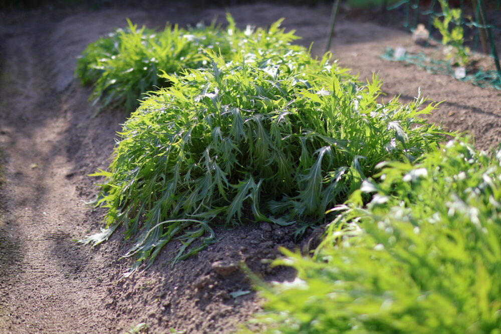 畑の水菜を逆光気味で。冬の冷たい空気が感じられるほどシャープな画像になる。手前の水菜のボケ具合もいい感じ。スナップを撮るのが嬉しくなる。