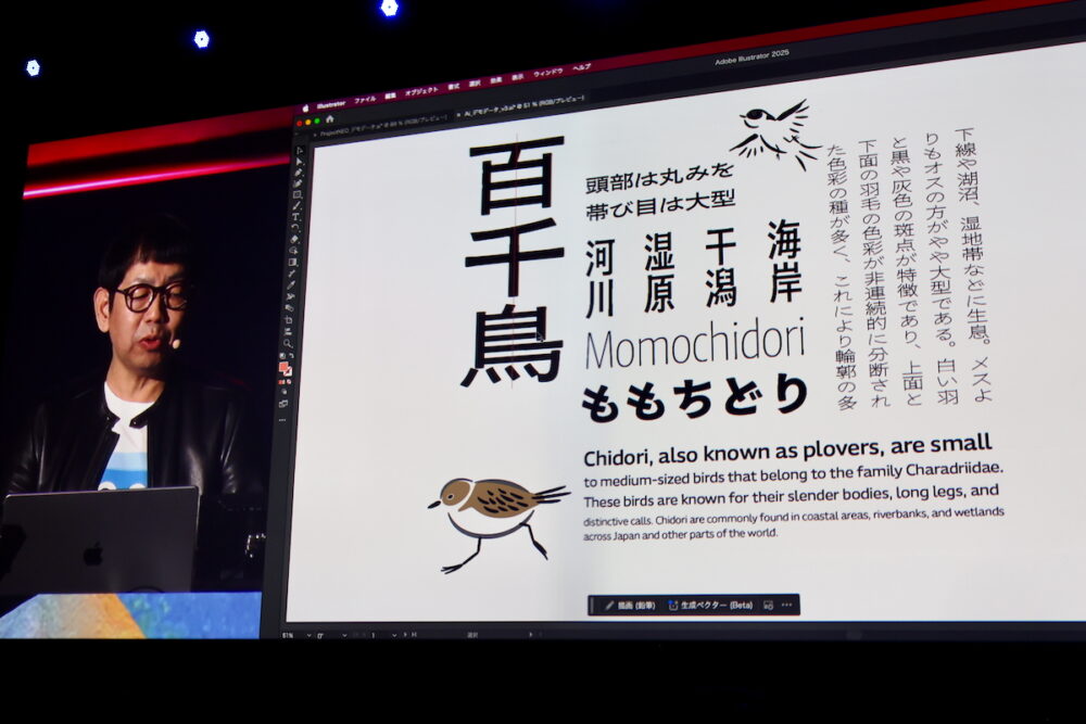 とりわけ注目は、アドビが独自に開発したフォント『百千鳥(ももちどり)』だ。このフォントは史上初のバリアブルフォントで、可変の仮想ボディを持つのが特徴。