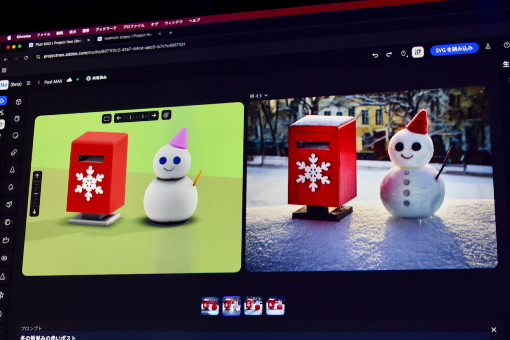 下の写真はそうやって作った左の3D映像を元に、Fireflyを利用することで右のようなイラストが生成されるというデモ。