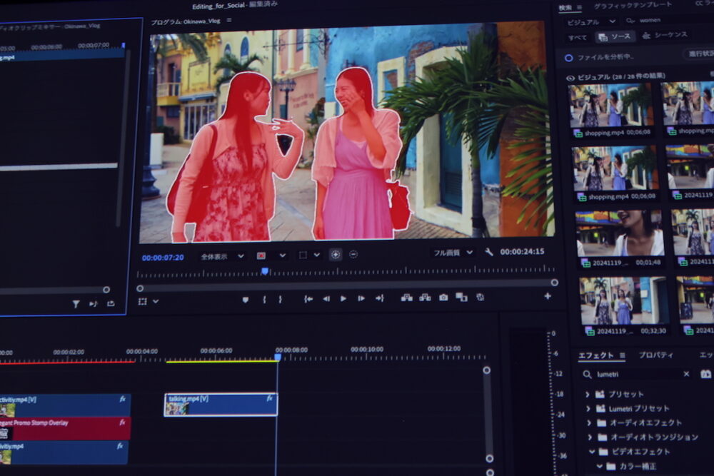 Premiere Proにも生成AIを活かした機能が用意された。人物など動いてるものを選択してマスクを作ることができるようになった。
