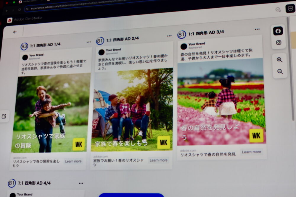 SNSなどによって、必要とされる画像サイズや、キャッチや本文の文字数は違うものだが、Adobe GenStudioを使うことによって、マーケターがブランドのルールに応じたキャンペーンコンテンツを大量に作れるようになったという。