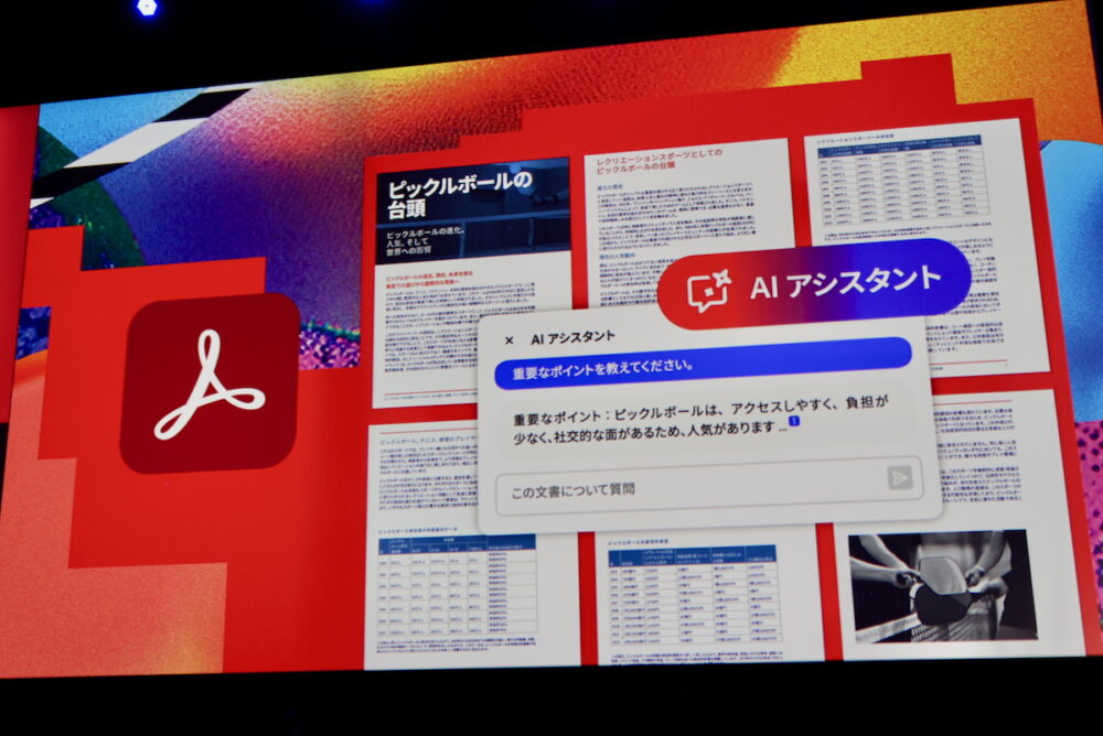 さらに、Adobe Acrobatでも生成AI機能が日本語に対応。AIアシスタントして、ドキュメントの要約を行ったり、ドキュメント自体に質問したりすることができる。質問にドキュメントが答えてくれるようになるなんて、実に画期的だ。