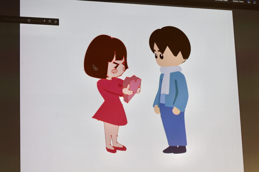 ちなみに、2024年10月にマイアミで開催された時のSNEAKSでは(ごめん、記事を書いていなかった)、開発者の女性が、クリスマスシーンに、遠距離恋愛で会えない彼氏の雑コラをするというものだった。