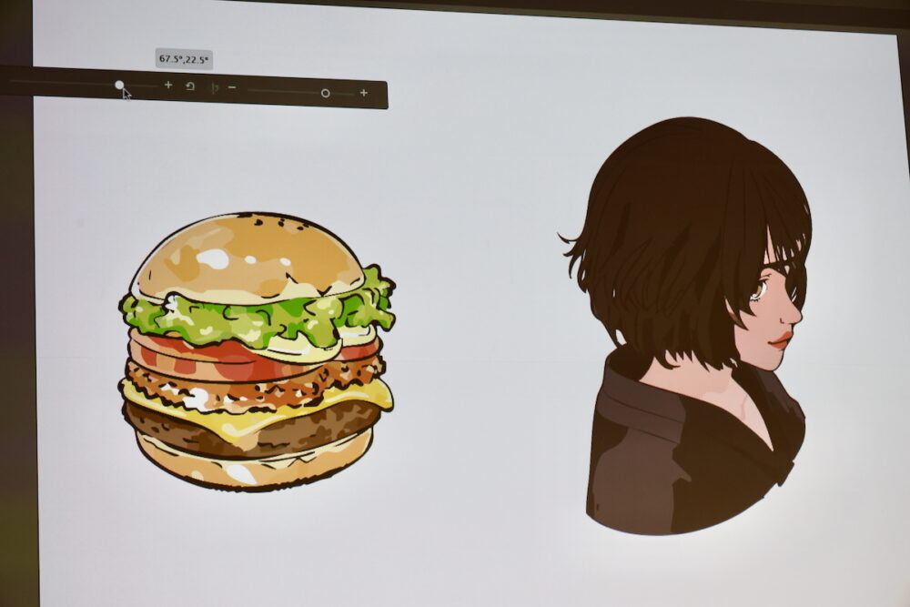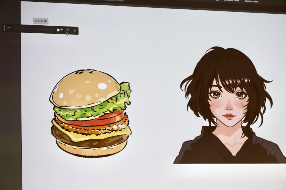 ご覧のような複雑なイラストでも回せる。これも平面的なベクターのイラストなのだが、『Turntable』を使えば……。