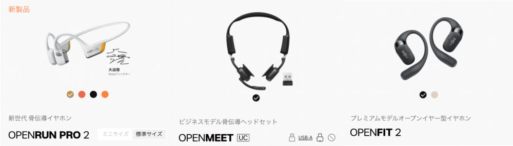 だから、骨伝導だけに拘らず、空気伝導のスピーカーも組み合わせたShokz DirectPitchテクノロジーを採用して、より音質を向上させたし、伝統の左右をチタンのフレームで繋いだスポーツ用イヤフォンであるOpenRunシリーズだけでなく、水泳用のOpenSwim、ビジネス用のOpenMeetやOpenComm、耳掛けタイプのOpenFitシリーズ……などがラインナップされるようになったというわけだ。
