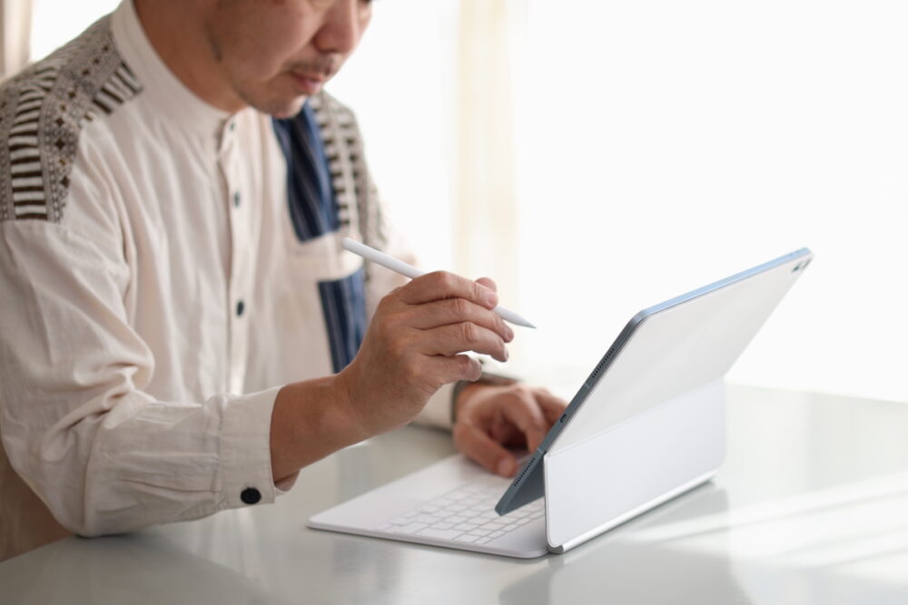 キーボードケース系は、装着すると思いのほか重いので、そのことを考慮に入れて検討したい。Smart Folioを使ってキーボードは別途BT接続のものを使うという手もある。Apple Pencilは高価なので躊躇する気持ちは分かるが、これこそがiPadの真価なので、ぜひ購入いただきたい。