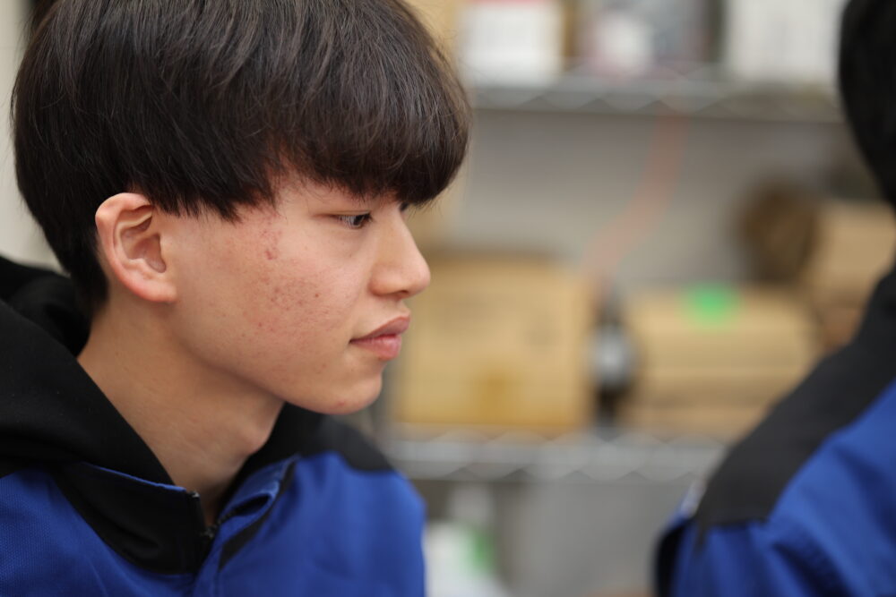 「最初はエンジン系をやっていたのですが、1年経って、知ったことがとても多くて……。どうやって燃焼するかとかは、入学してから知ったので。まだまだ、進路はこれから考えようと思っています」