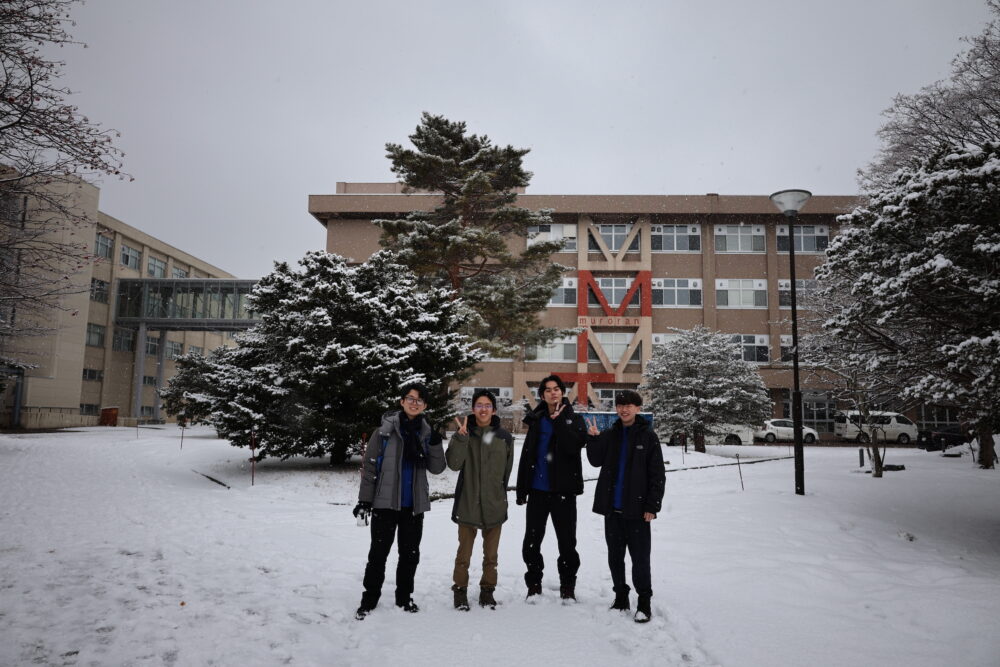 駅からはタクシーで室蘭工業大学の部室に向かったが、学生さんもクルマがなければなかなか自由のない生活なのだそうだ。途方もなく広い雪の学内を歩いてこの部室棟に向かうのはなるほど大変そう。