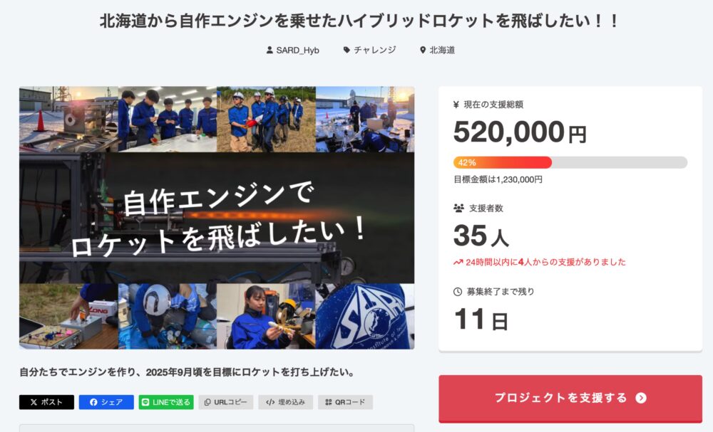 また、CAMPFIREで自作エンジンとロケットのためにクラウドファンディングを実施中。締切まであと、11日なので、みなさんぜひ、ひと口でも支援を!