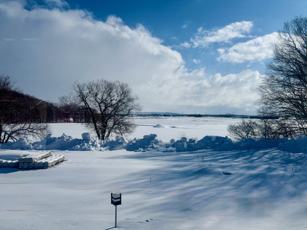 札幌までJRの快速で40分あまり。乗り換えて特急でさらに北に約1時間。車窓から見える景色は完全に真っ白な雪原が続く。この大地で、毎日雪と戦いながら暮らしている人がいるのかと思うと圧倒される。