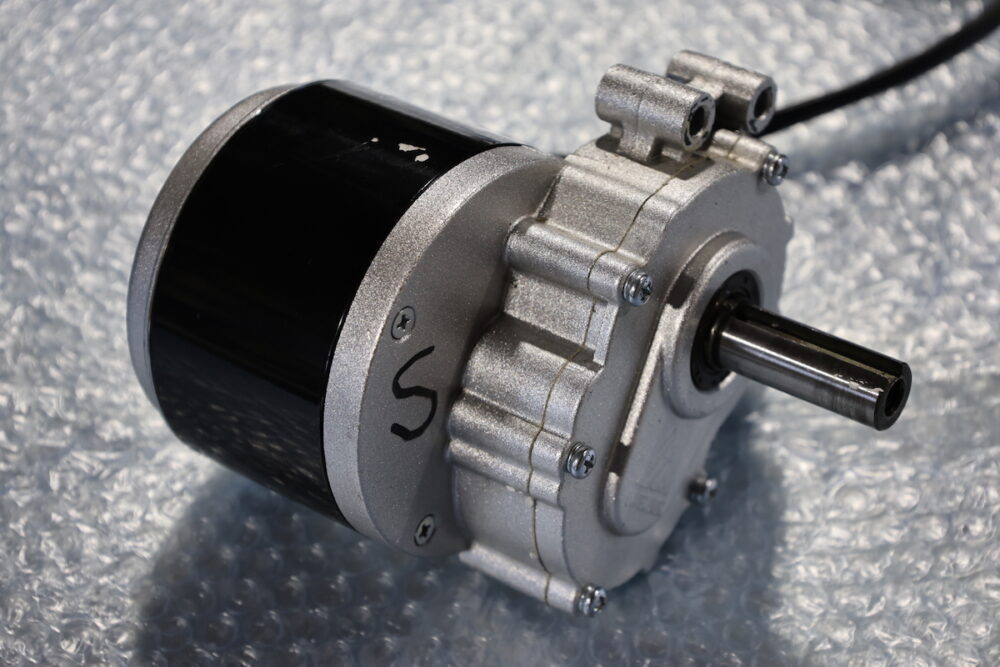 モーターはブラシモーターを各車輪に合計4台装着し、出力は計1000W。人を乗せる電動車イスなどに使われるものなので、トルクは十分にある。