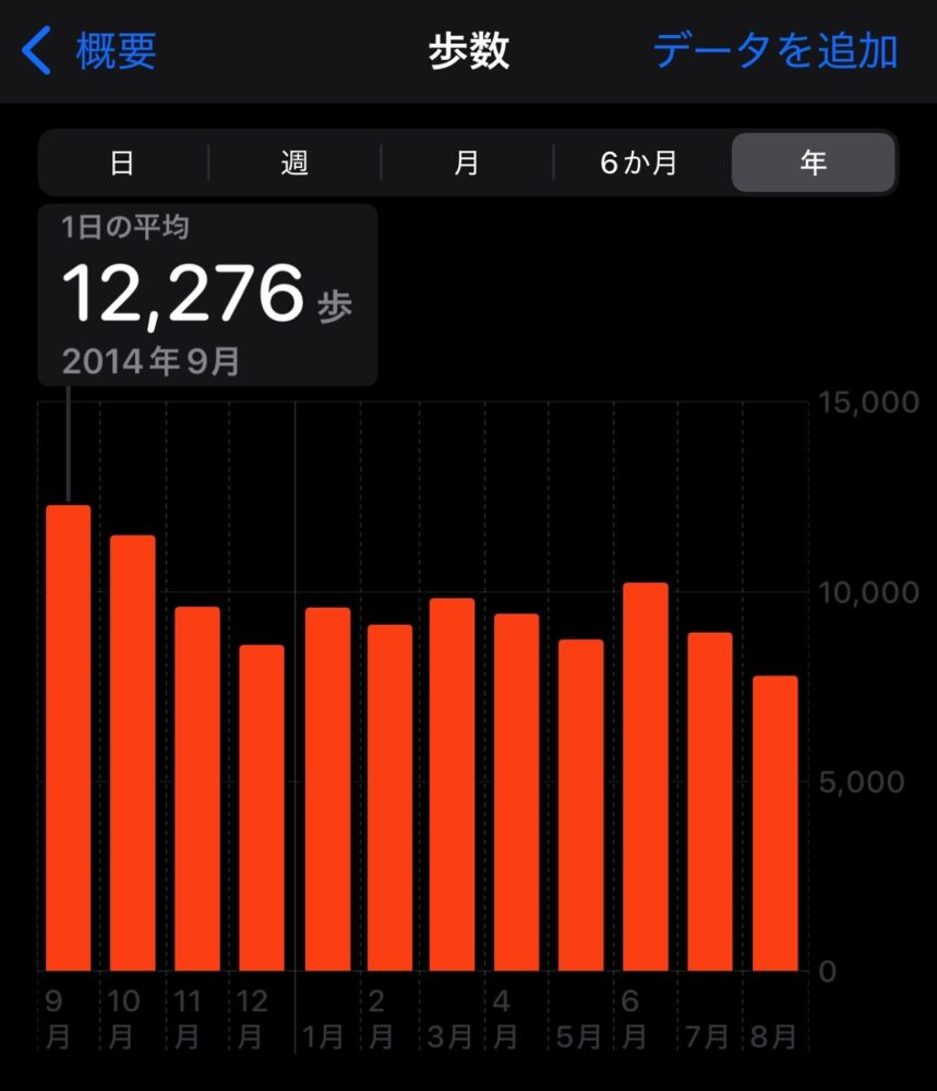 筆者のiPhone(というか、iCloud)には、2014年9月からの歩数のデータがびっしりと残っている(Apple Watch登場より古いのは、この頃からiPhoneでも歩数を計測するようになっているから)。だいたい、1日1万歩以上歩いているから10年で3650万歩ということになるのだろうか。