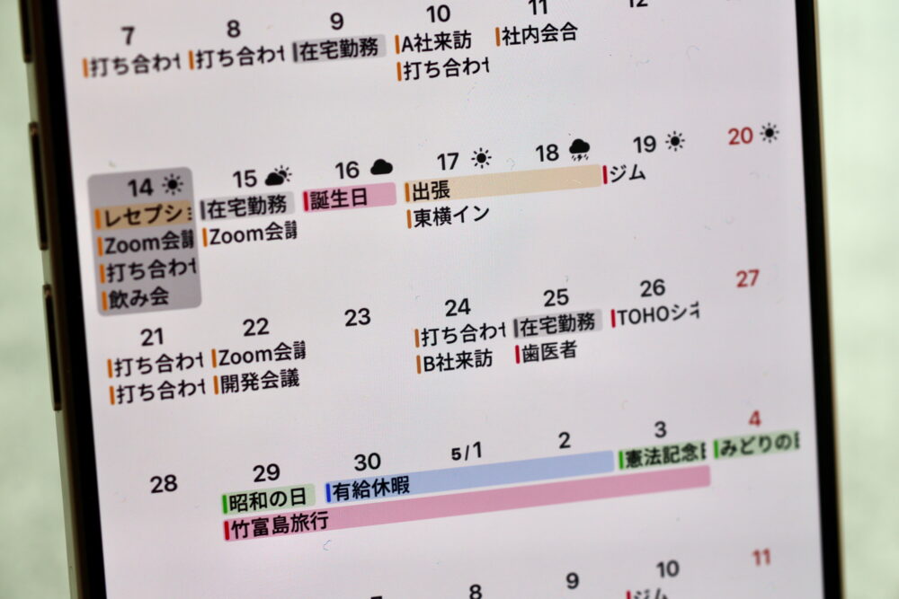 iPhoneはどんどん大画面、高精細化しているのに、月表示にすると、個別の予定は見えず、週表示やリスト表示にすると全体は見えない。というわけで、筆者は、スケジュールの調整を行う時には、極力Macを使うようにしていた。とにかく、スケジュールの調整で失敗すると、ダブルブッキングしてしまったり、すっぽかしてしまったりと、他の人に迷惑をかけるから、ここは慎重にならなければいけないところだ。