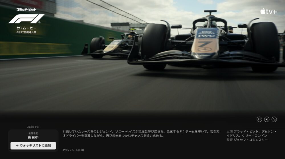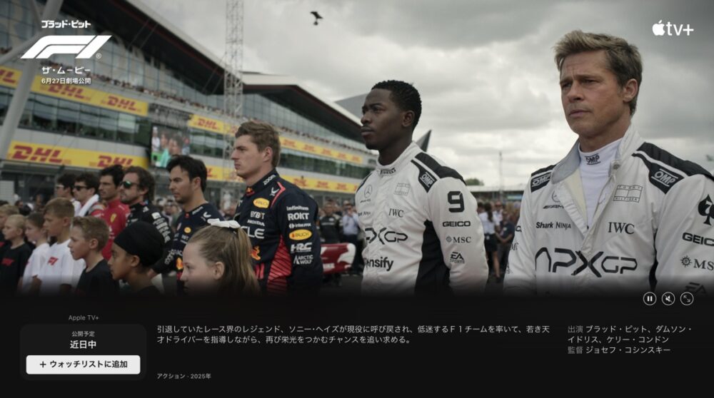 映画『F1/エフワン』は、6月27日から劇場で公開され、その後Apple TVでも見られるようになる。