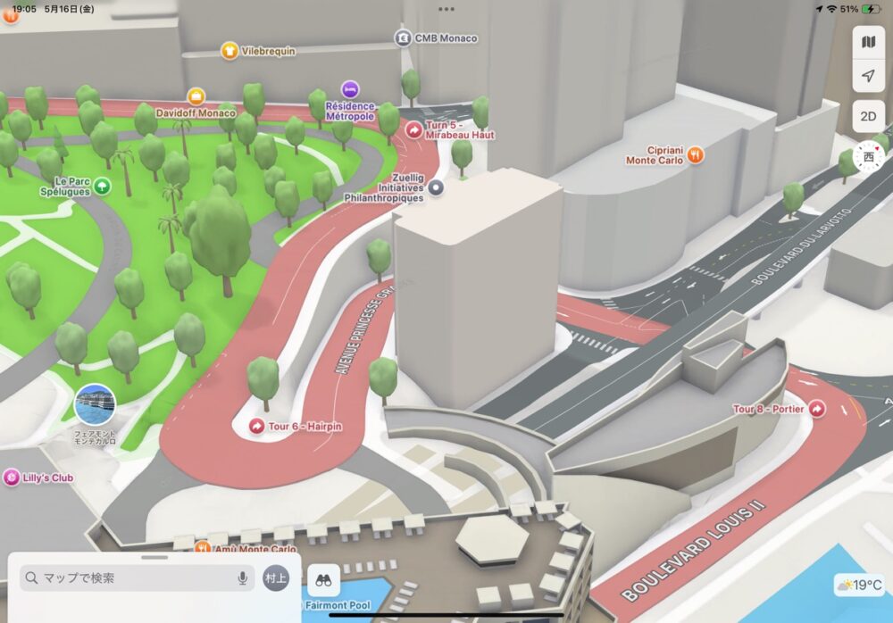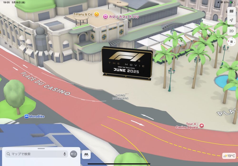 映画公開直前に開催されるモナコのコースを『マップ』アプリで緻密に表現