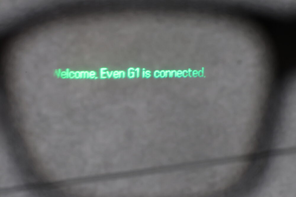 ちなみに、下の状態で、私はカメラの方を見つつEven G1に表示されている文字を読んでいる。