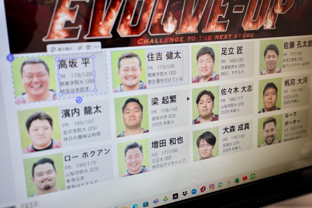 こちらは、今年のチーム構成や、次回の試合について記したチラシ。以前はデザインも印刷会社に依頼していたが、今はこれもユンさんがAdobe Expressでデザインして、スポンサーである印刷所に刷ってもらっている。