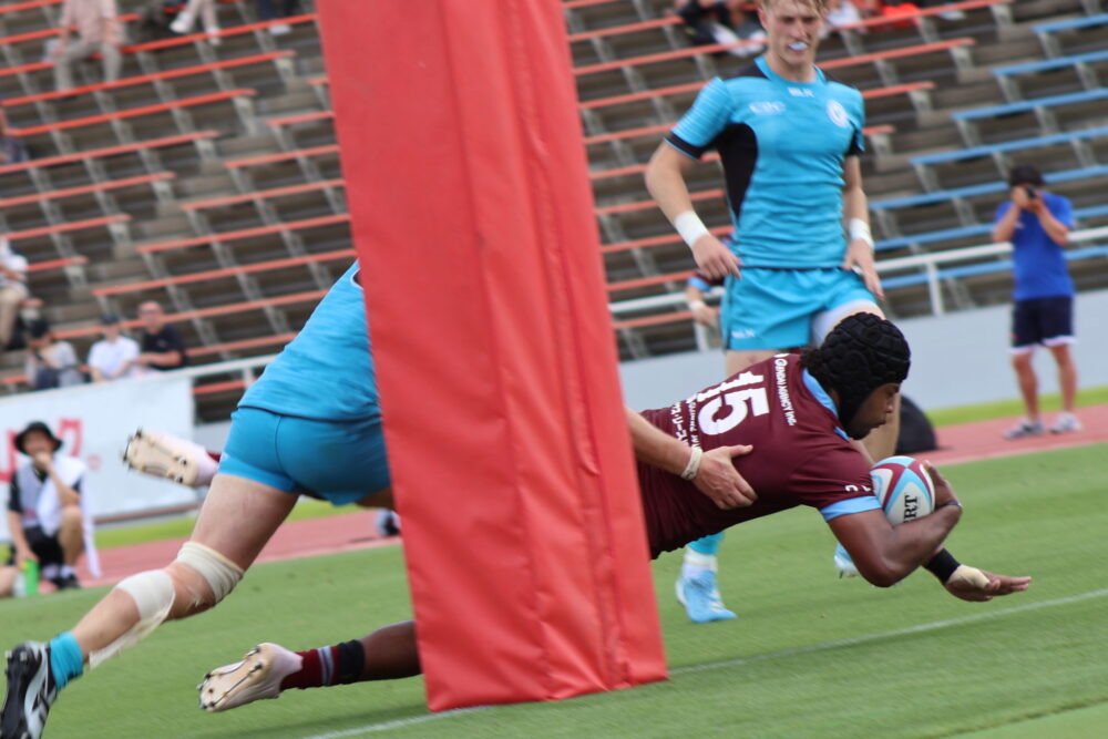 ロックの巨漢、ルーカス・ボイランや、ルーク・ポーターの身体を張ったディフェンスや、フルバックのキニヴワイ・ベイタタの渾身のトライも光ったが、試合は最後残念ながら14対21で山梨学院大学の勝利となった。