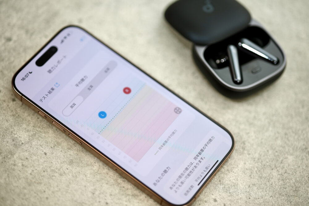 また、聴力テストも行うことができる。AirPods Pro 2のものと同じような小さな「ピー」という音を聞いて、聞こえたら画面をタップするタイプの計測方式。ただし、AirPods Pro 2の医療レベルの承認を受けているものとは異なり、Soundcore Liberty 5のものは、あくまで目安であり音楽体験の向上を目的としたもの。AirPods Pro 2はFDA(米国食品医薬品局)に認証された市販用(OTC)補聴器ソフトウェアとして認証されており、このレベルを達成して、各国で承認を取るのは大変な手間がかかっているはずだ。