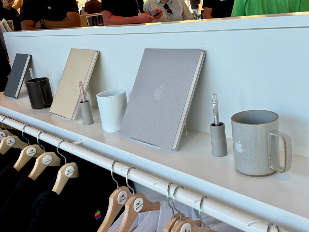 Apple Park Visitor Centerにはいくつかお土産として買えるノベルティグッズがある。時折デザインの変わるTシャツなどが中心だが、今回見に行ったらマグカップやノートなどもあった。