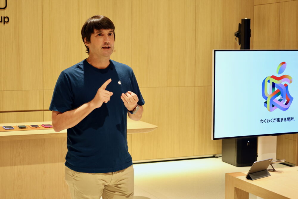 こちらはApple梅田のストアリーダーのスコット・ノルマンディーさん。アメリカ人だが、大阪に住んで20年になるという。従来はApple心斎橋に勤めており、『今日、新たな一歩をここ大阪で踏み出します。Apple梅田は大阪駅の目の前という絶好のロケーションにあり、地元大阪の方はもちろん、通勤・通学の方や観光で訪れる方々にもご利用いただけるストアです』と挨拶された。